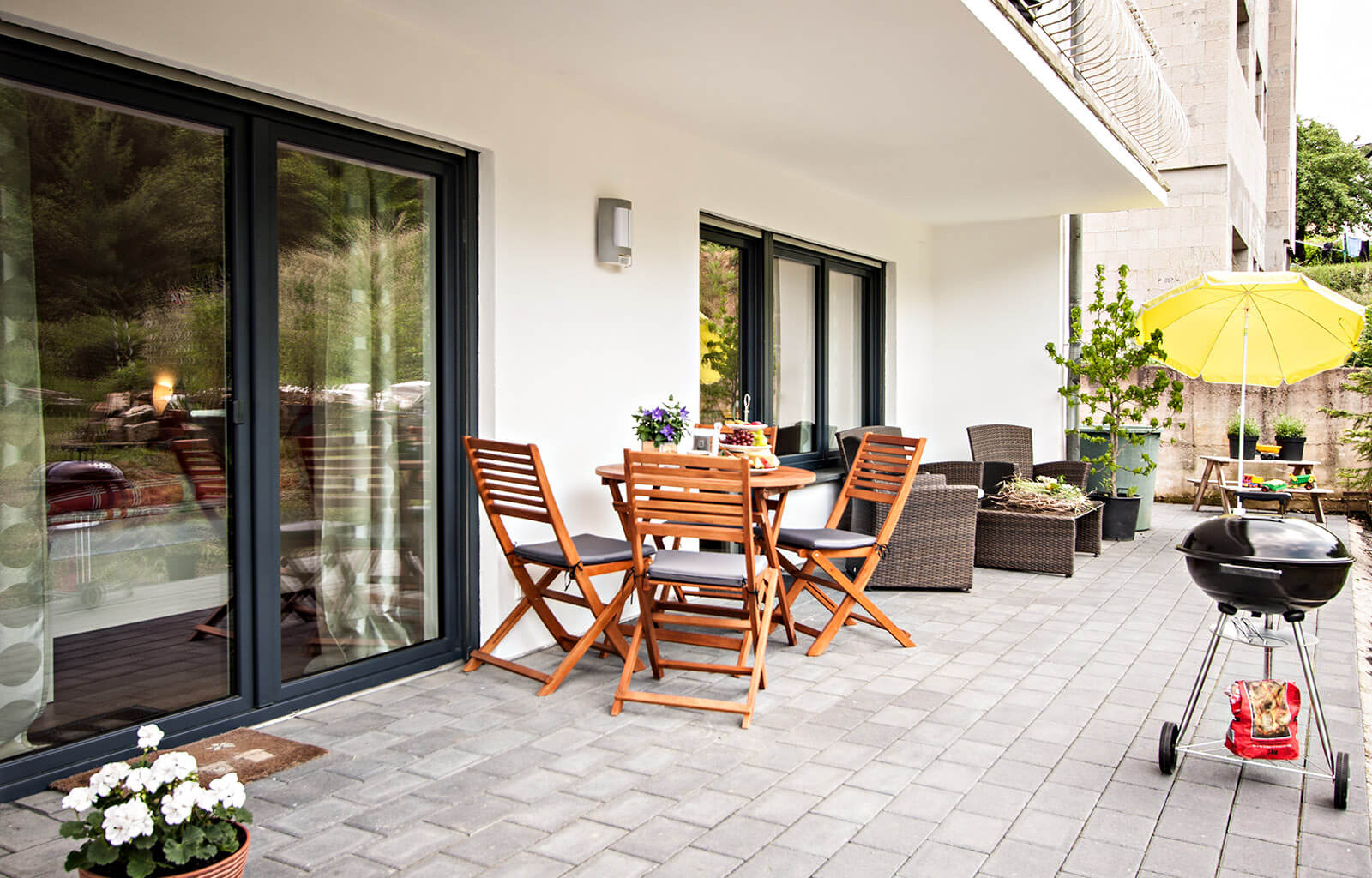 - Abschließbarer Fahrradraum (mit Steckdosen zum Laden)