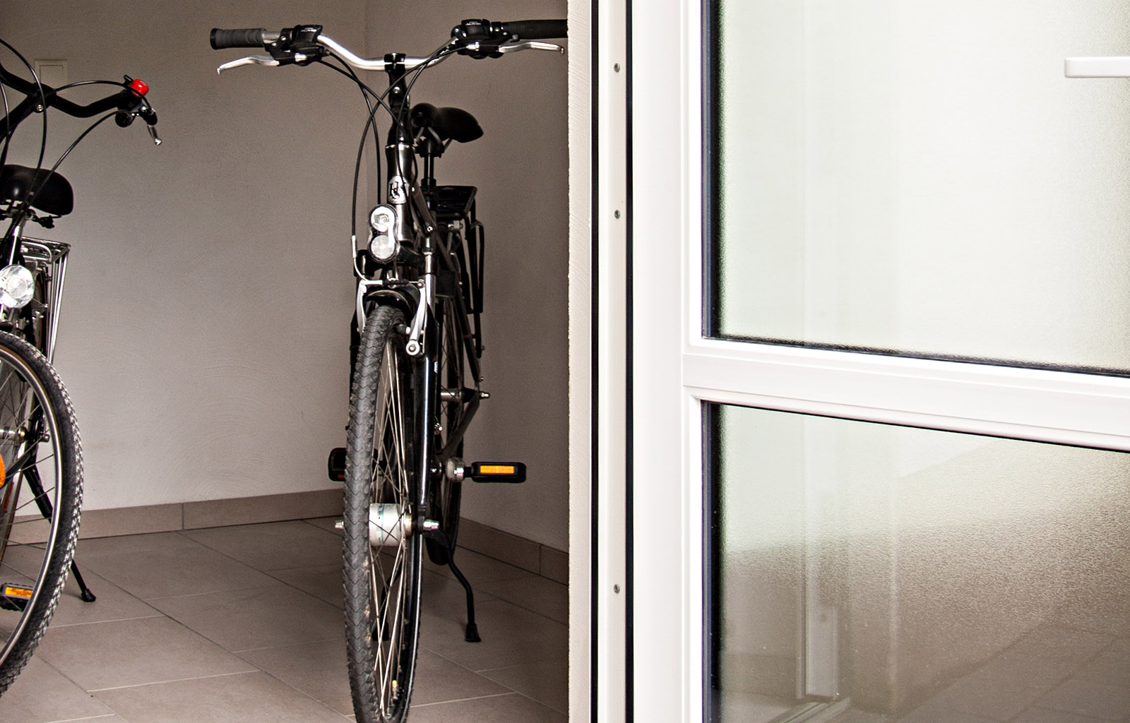 - Abschließbarer Fahrradraum (mit Steckdosen zum Laden)